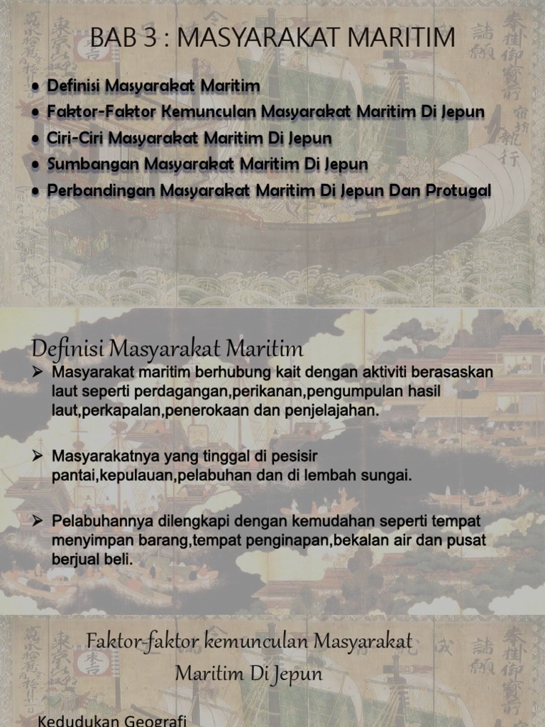 Masyarakat maritim di portugal merupakan masyarakat yang berani menghadapi cabaran. Tema 1 masyarakat bab 3 masyarakat maritim tajuk. Jalinan perhubungan dengan masyarakat antarabangsa menyebabkan masyarakat jepun menerima pelbagai pengaruh budaya luar.
