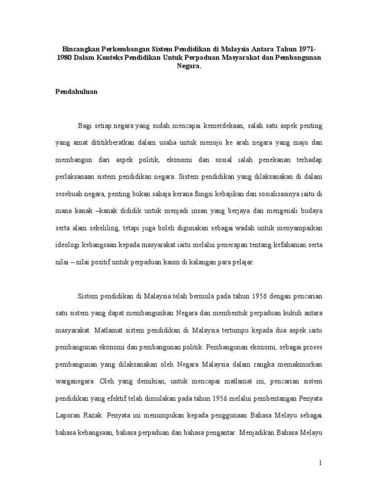 An Sistem Pendidikan Di Malaysia Antara Tahun 1971 1980 Dalam Konteks Pendidikan Untuk Perpaduan Masyarakat Dan Pembangunan Negara