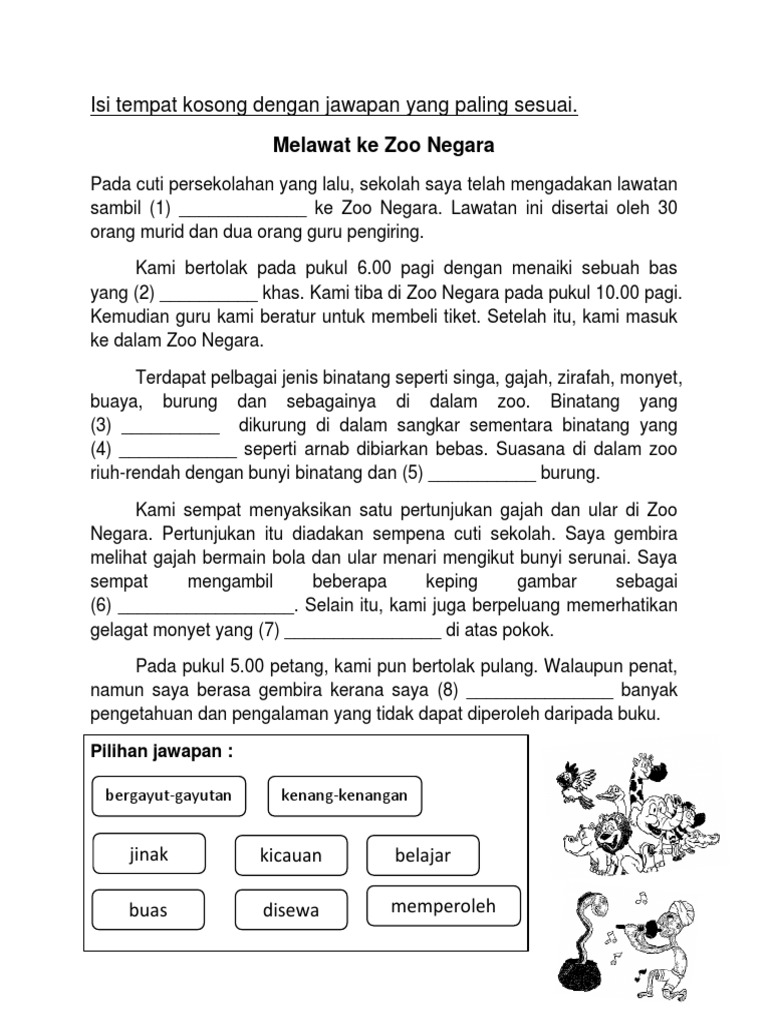 Isi Tempat Kosong Dengan Jawapan Yang Paling Sesuai Melawat Ke Zoo Negara