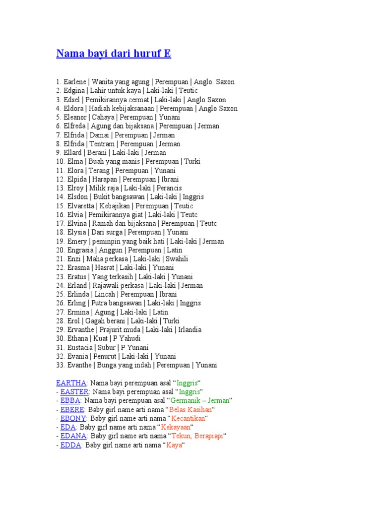 Nama Anak Huruf E Dalam Islam Artinya 100 Arti Nama