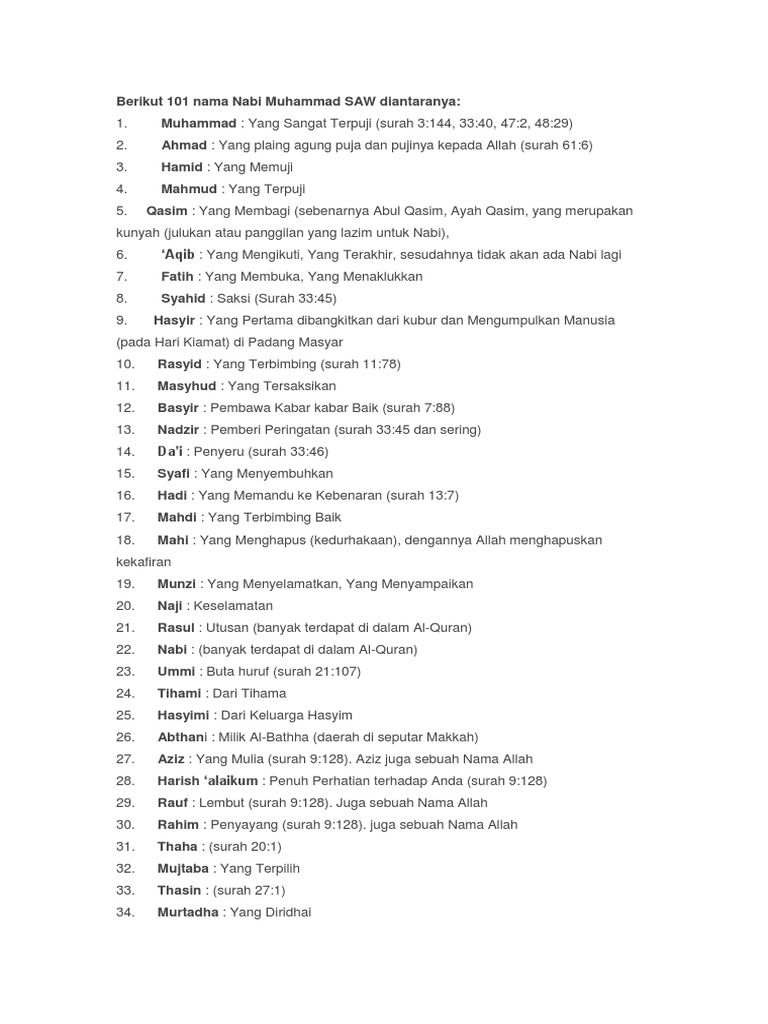 201 Nama Nabi Muhammad Saw Arab Dan Artinya
