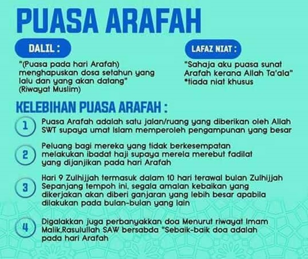 Niat Puasa Sunat Arafah 2019 Rubiah Kadir