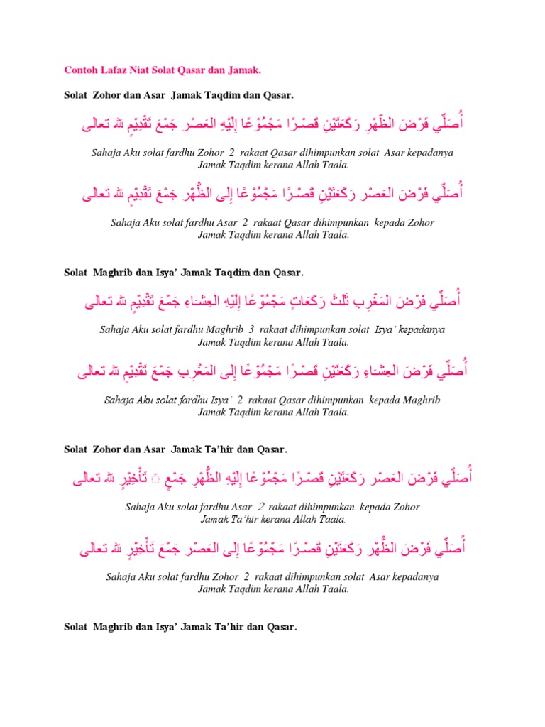 Contoh Lafaz Niat Solat Qasar Dan Jamak