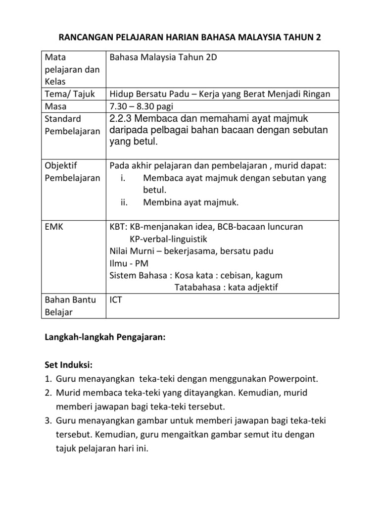 Bahasa Melayu Tahun 4 Penggunaan Nilai Murni Dalam Penulisan