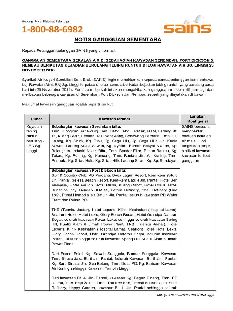 Notis Gangguan Bekalan Air Sementara Negeri Sembilan Events Facebook