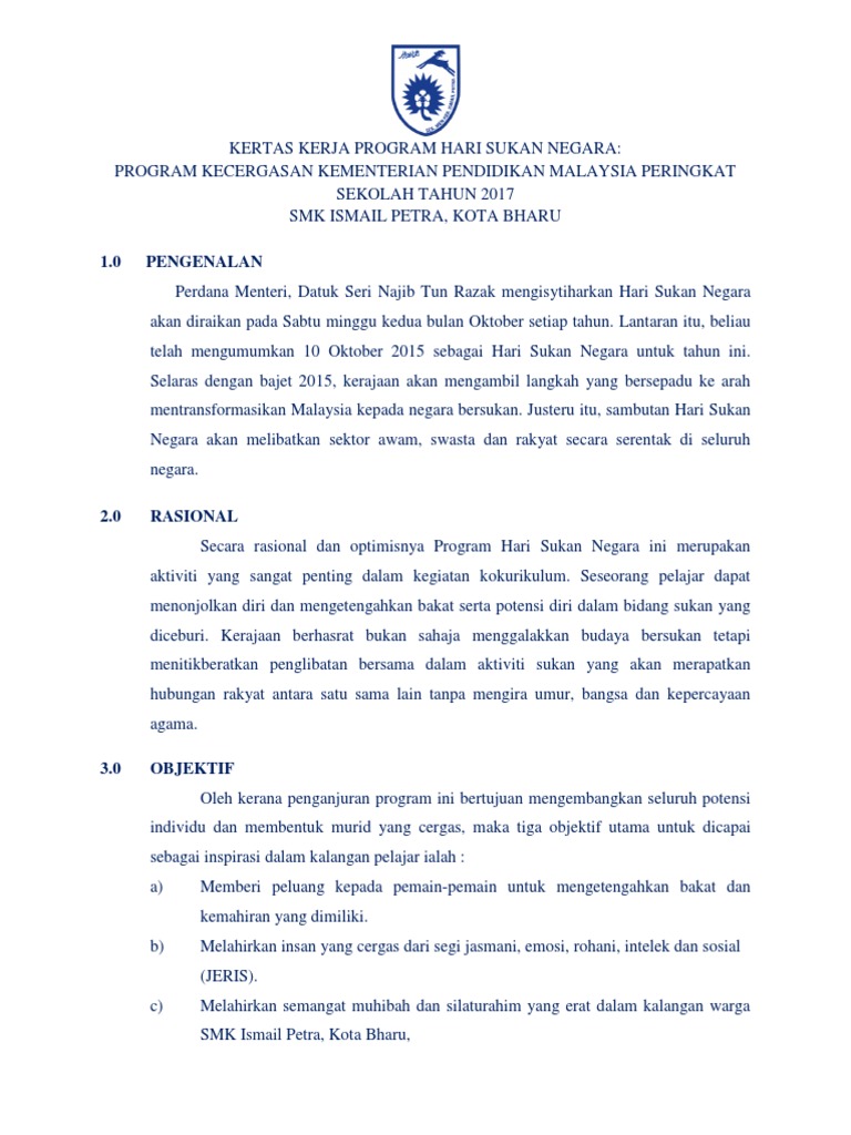 Doc Kertas Kerja Program Hari Sukan Negara Smk Ungku Aziz Sabak Bernam Selangor Hanita Shahadan Academia Edu