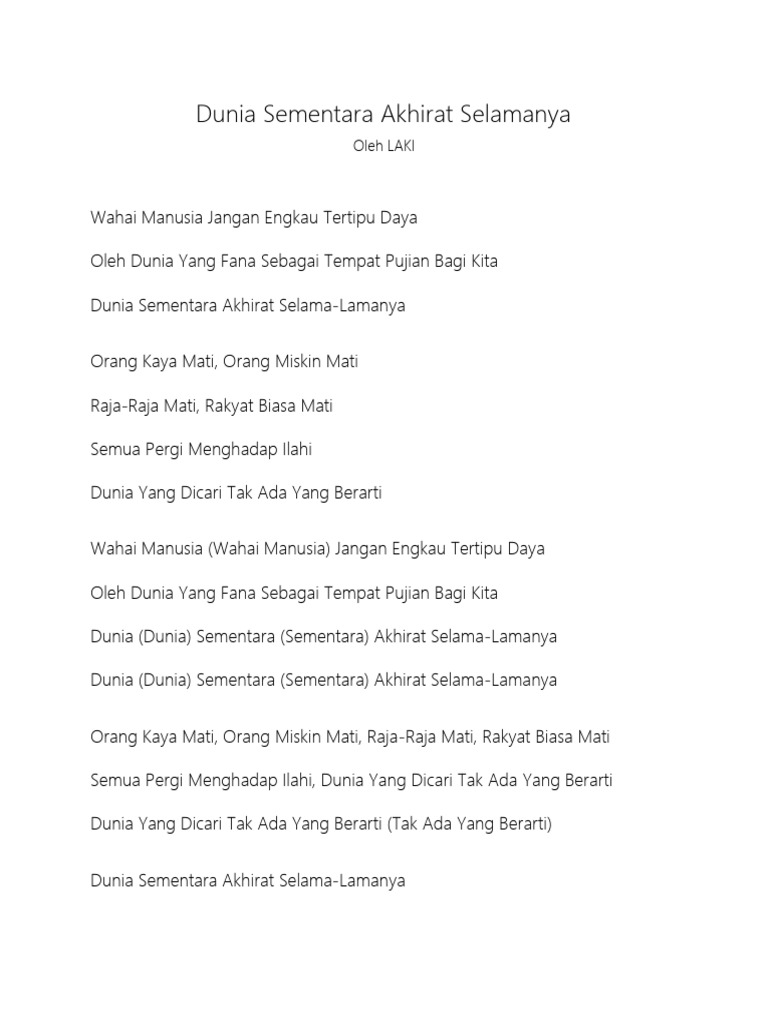 Lirik Lagu Dunia Sementara Akhirat Selamanya