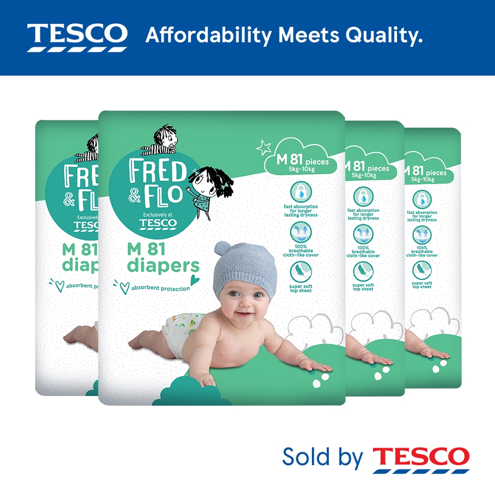 Tesco Fred Flo Baby Tape Diaper M 81 X 4 Packs 324 Pcs 5 10kg Shopee Singapore