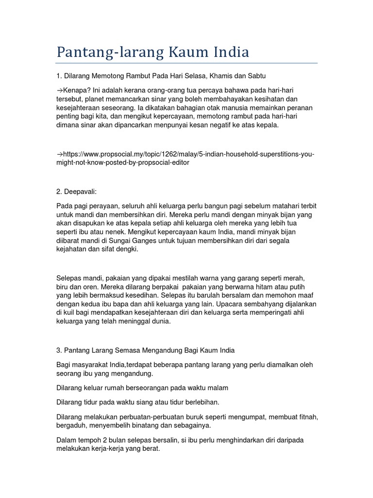Pantang Larang Kaum India