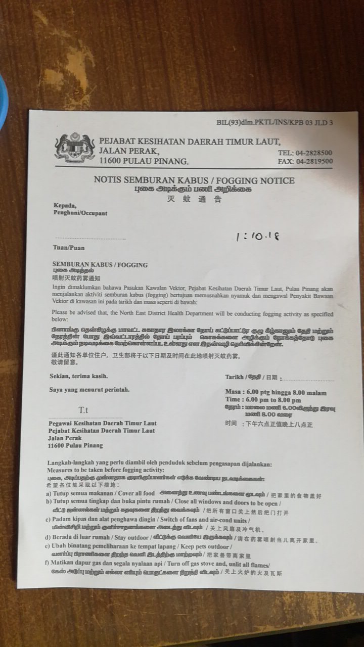 Naz A Twitter Dapat Notis Ada Sembur Nyamuk Di Pulau Pinang Hebat Gila 4 Bahasa Terus Dalam Satu Surat Cuma Adakah Surat Macam Ni Dianggap Normal Dari Dulu Lagi Atau Sejak
