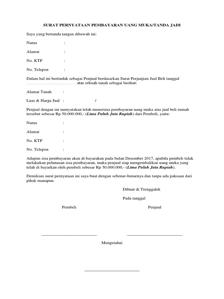 Contoh Surat Perjanjian Pembayaran Dp Rumah Sekitar Rumah
