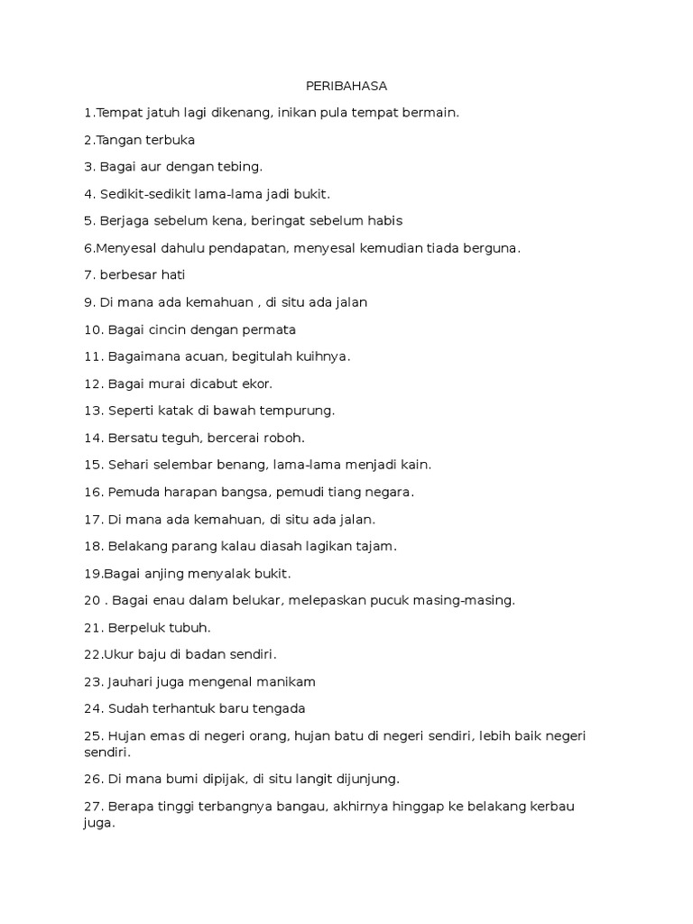 Senarai Peribahasa Yang Sesuai Dengan Tema